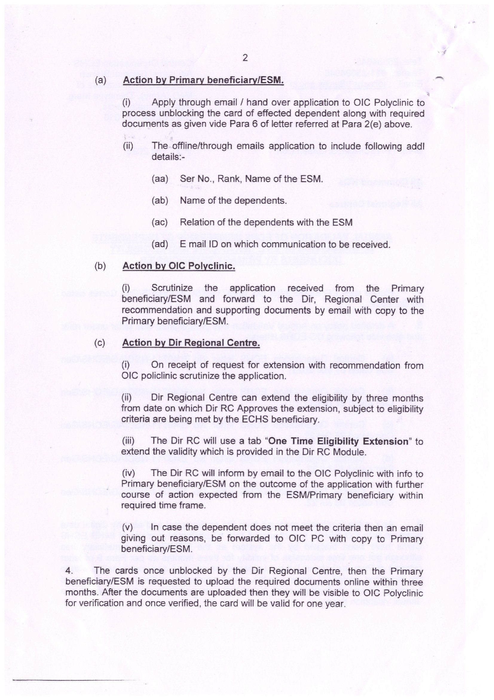 Annual validation of echs membership of dependents DT 15 jul 2023