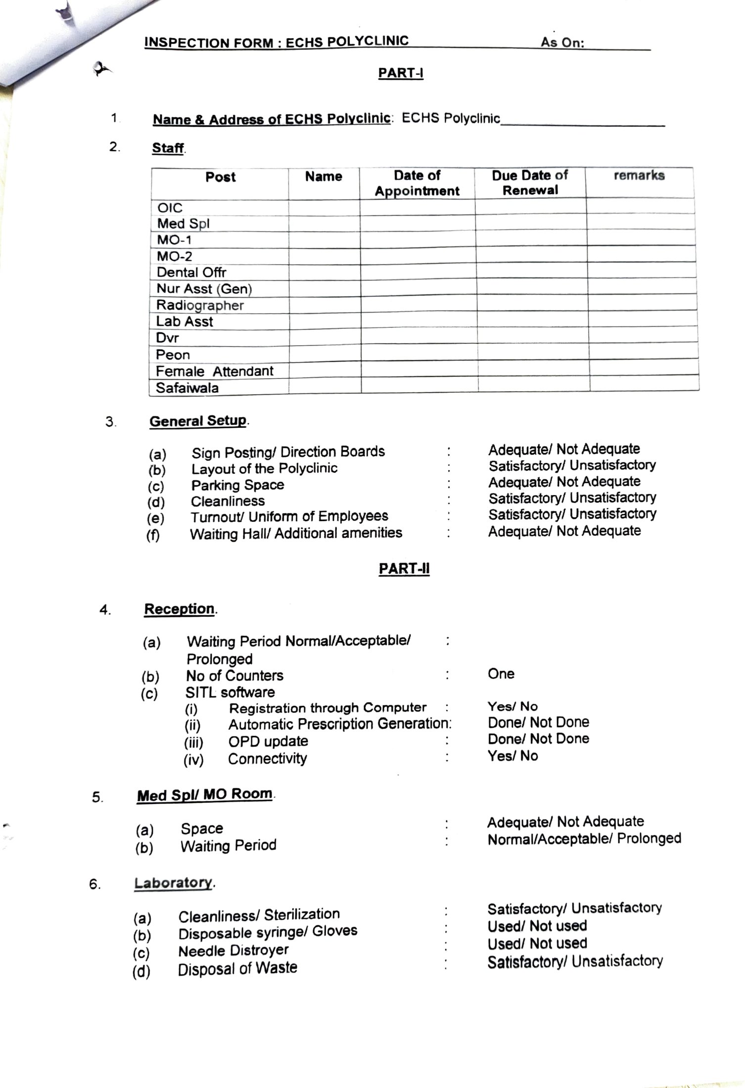 Annual insp of ECHS PC