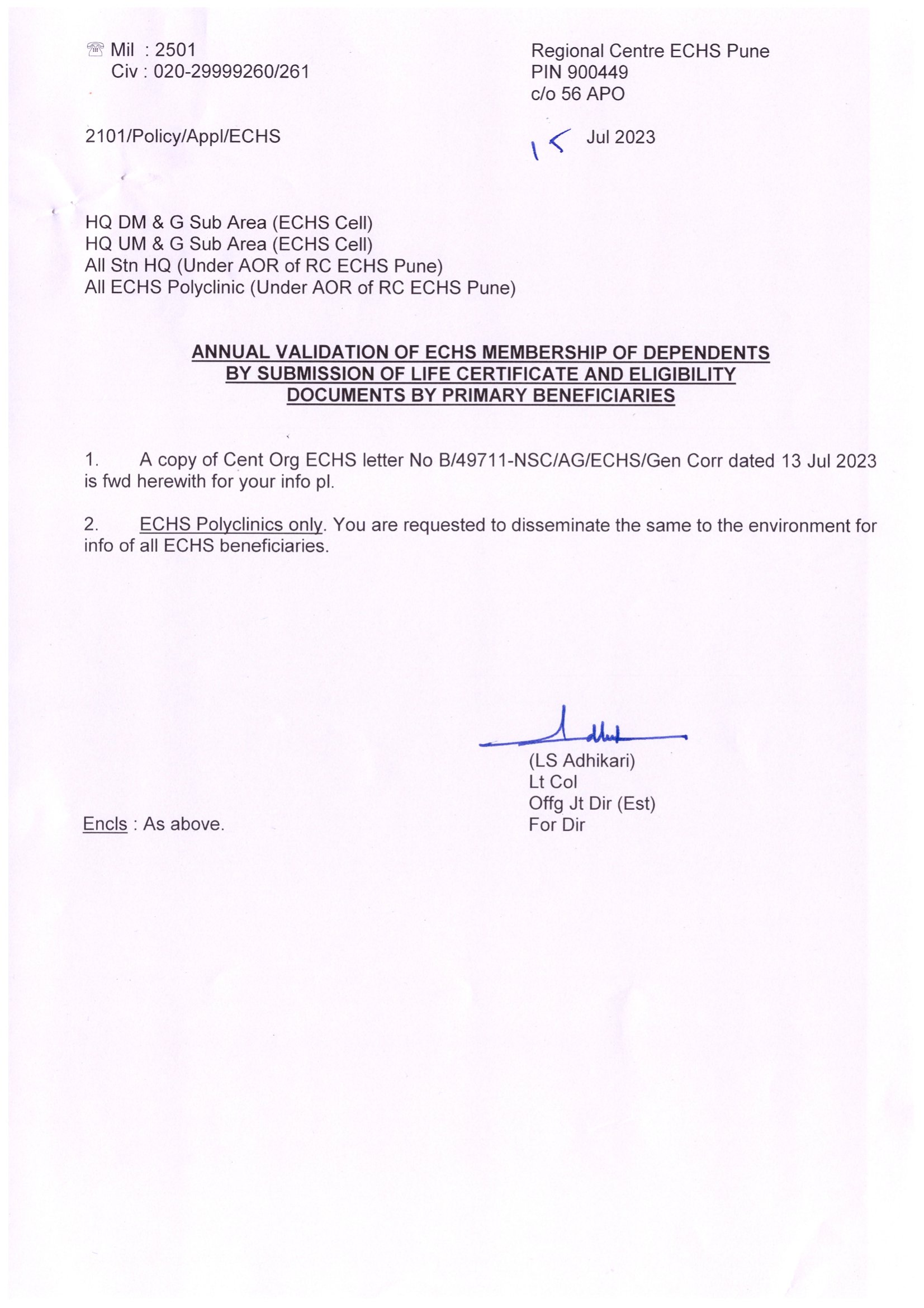 Annual validation of echs membership of dependents DT 15 jul 2023