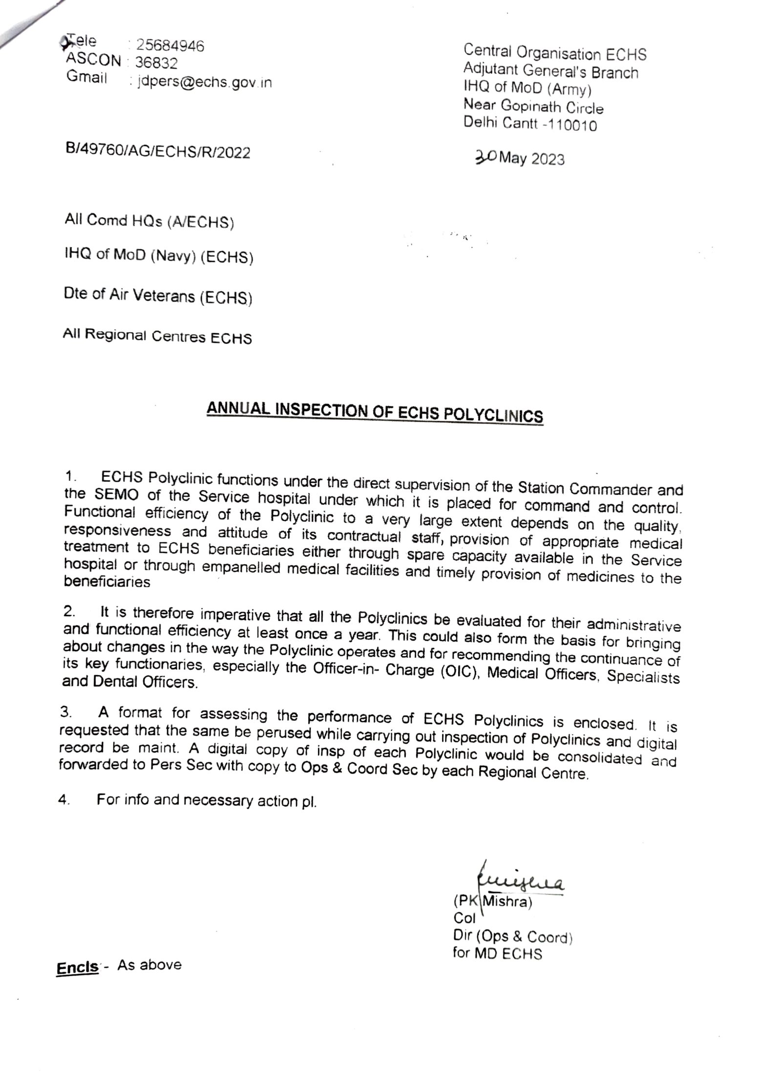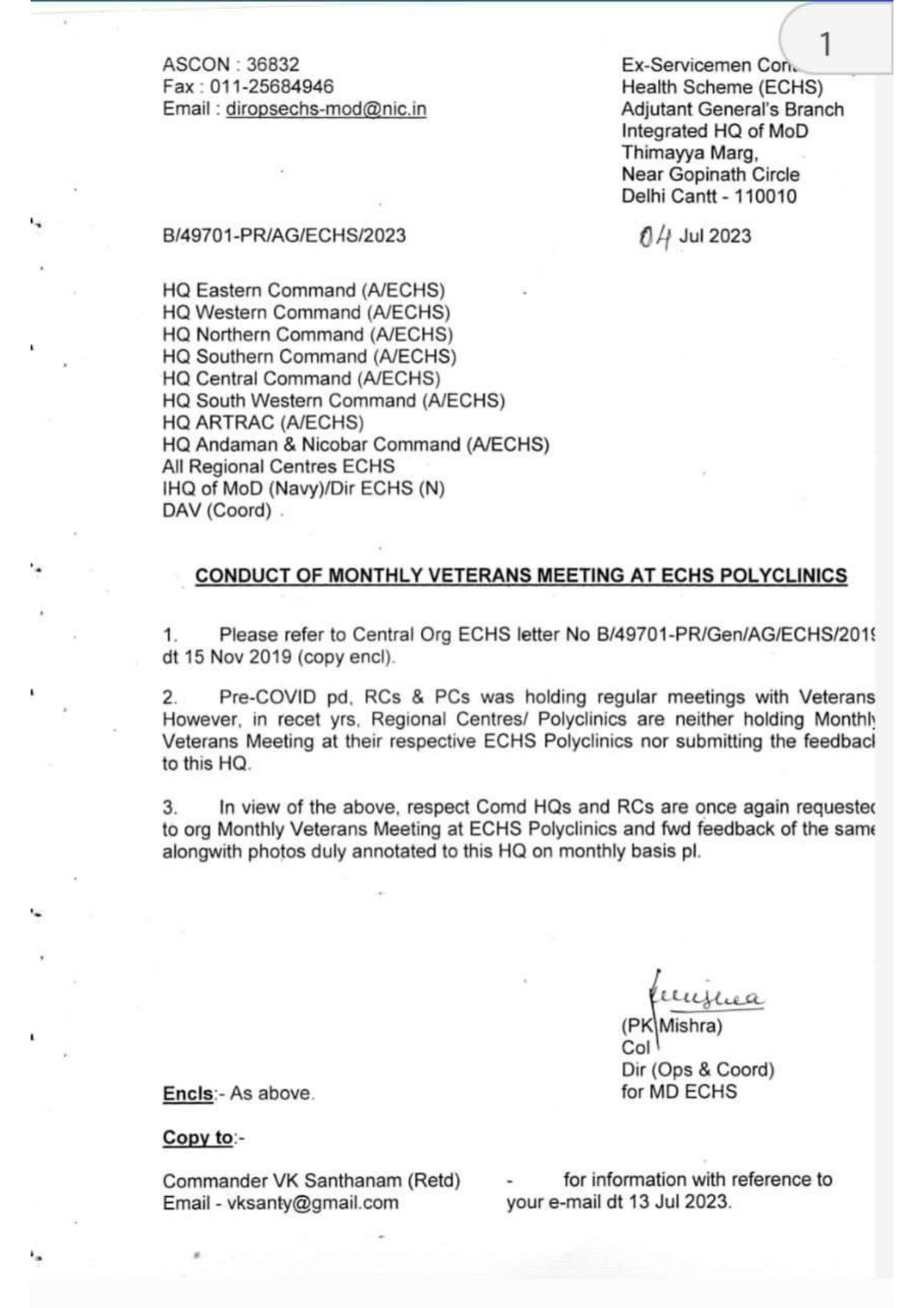 Conduct of monthly veterans meeting at ECHS polyclinics