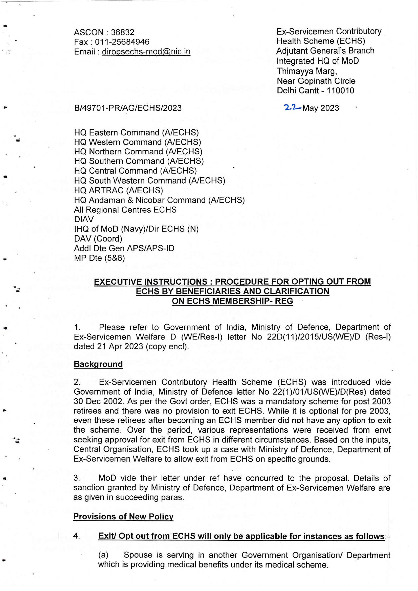 Procedure for opting out from echs by beneficiaries and clarification on echs membership reg