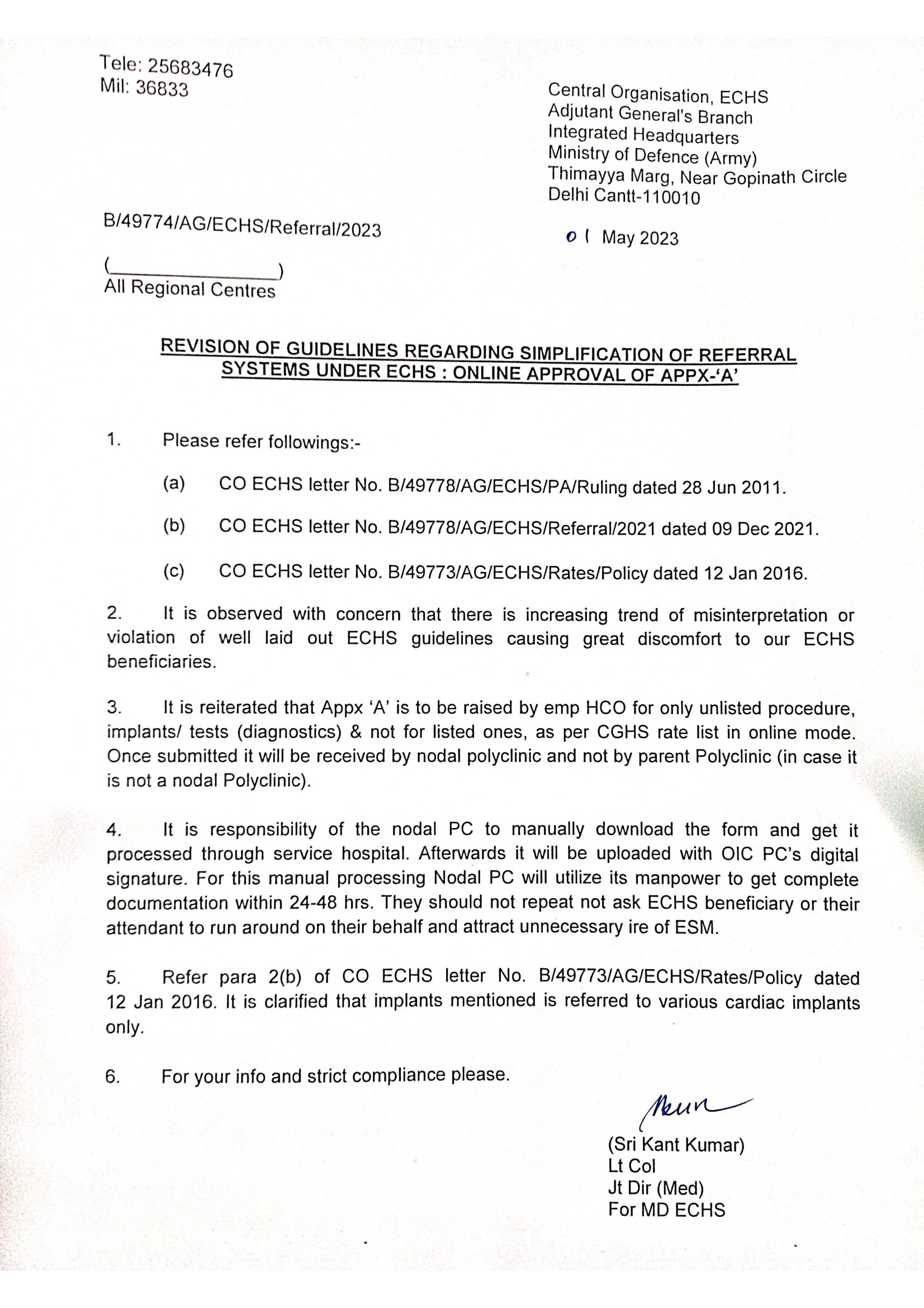 Revision of guidelines regarding simplification of referral systems under echsonline Approval Of Appxa Dt 01 May 2023