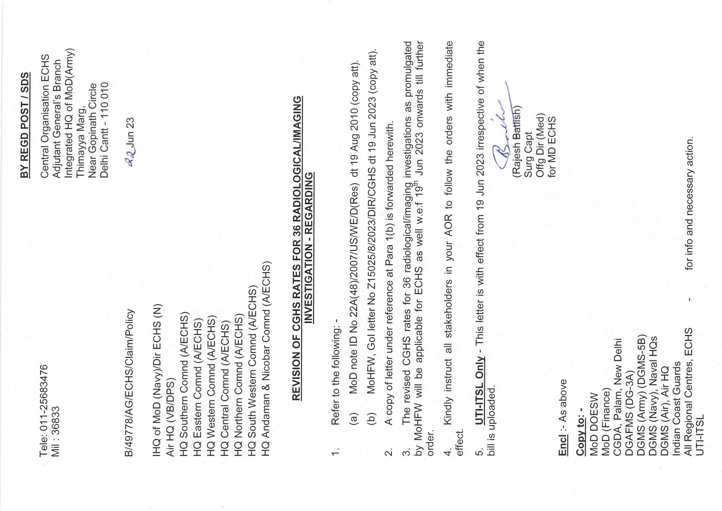 Revisoin of CGHS Rates for 36 Radiological Imagining investigation regarding